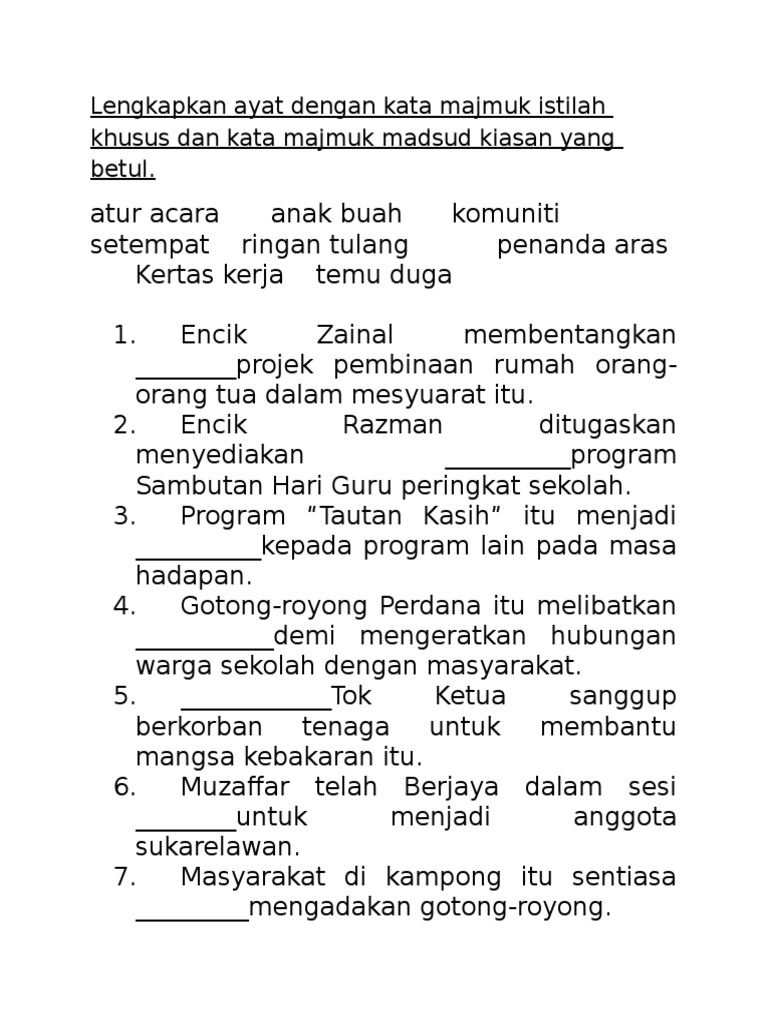 Kata Majmuk from imgv2-1-f.scribdassets.com Istilah pun terdiri atas istilah umum dan istilah khusus. Gabungan kata, termasuk istilah khusus, yang mungkin menimbulkan salah pengertian, dapat diberi tanda hubung untuk menegaskan pertalian di antara unsur yang bersangkutan. Kata ini adalah kata majemuk, atau kadang disebut gabungan kata, yang tersusun dari kata terima dan kasih. 'masyarakat indonesia merupakan masyarakat yang majemuk'. Sejak dikumandangkan sebagai bahasa persatuan bangsa indonesia, penggunaan bahasa indonesia makin luas ke berbagai bidang kehidupan, bahkan berpeluang menjadi bahasa ilmu pengetahuan. Berikut adalah kata istilah yang dikategorikan sebagai istilah khusus dalam bahasa indonesia yang berhasil dirangkum, berikut definisinya dan contoh dalam penerapan katanya. Definisi/arti kata 'majemuk' di kamus besar bahasa indonesia (kbbi) adalah a 1 terdiri atas beberapa bagian yang merupakan kesatuan: Kata majmuk istilah khusus bm sjk c tahun 5.